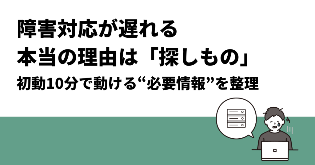 障害対応が遅れる原因は、技術の前に「探しもの」で初動が止まることです。